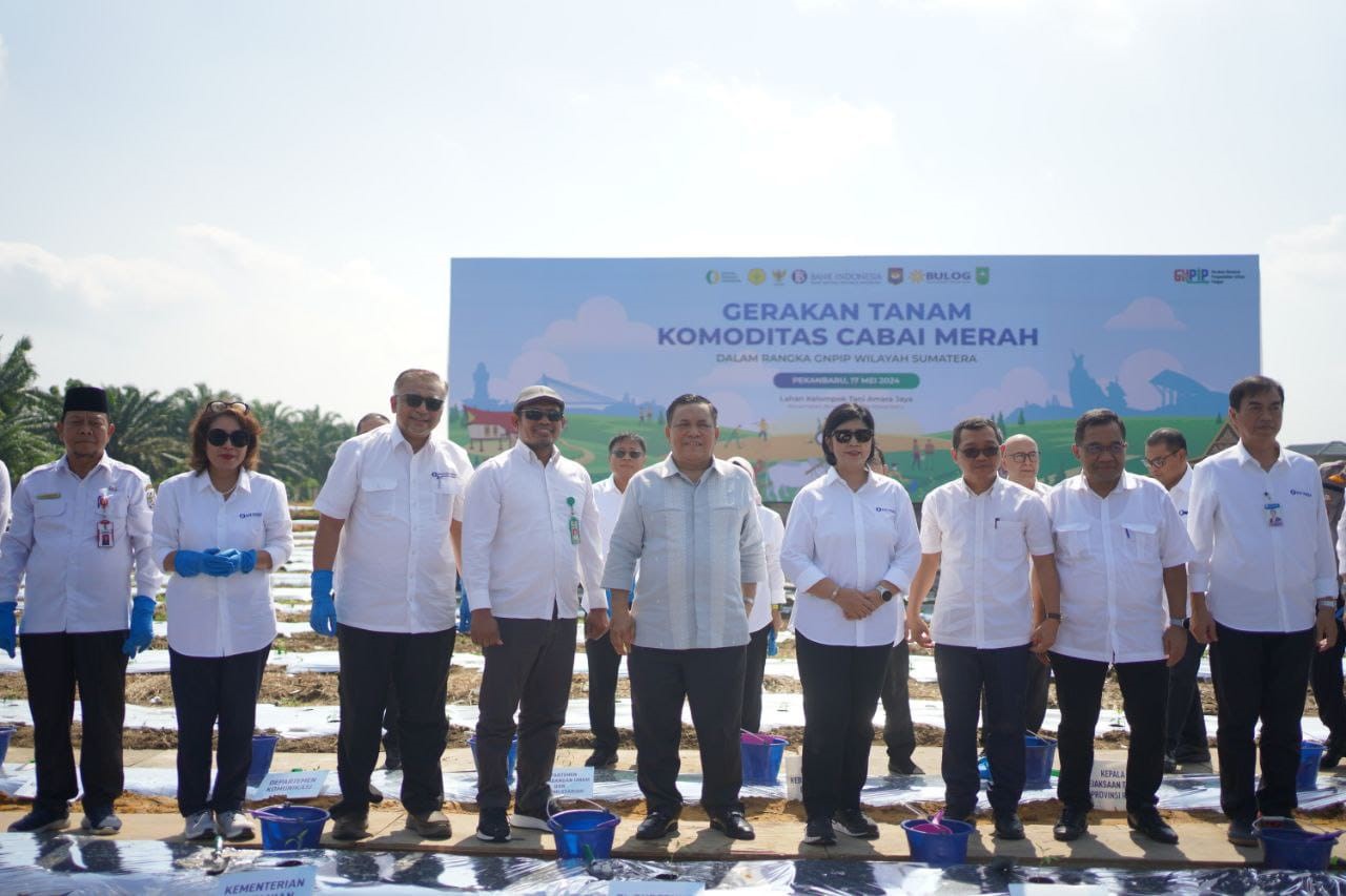 Penanaman cabai pada acara launching GNPIP) Wilayah Sumatera 2024 di Binawidya Pekanbaru.