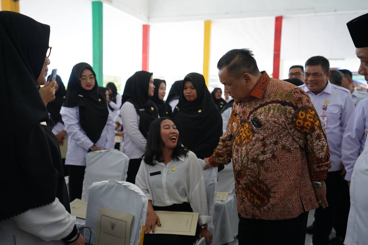 Kedatangan Pj Gubri SF Hariyanto disambut antusias oleh ratusan tenaga pendidik. Pada momen tersebut, sebanyak 204 SK PPPK diterima langsung oleh tenaga pendidik Pemerintah Provinsi (Pemprov) Riau yang mengabdi di Kabupaten Siak.