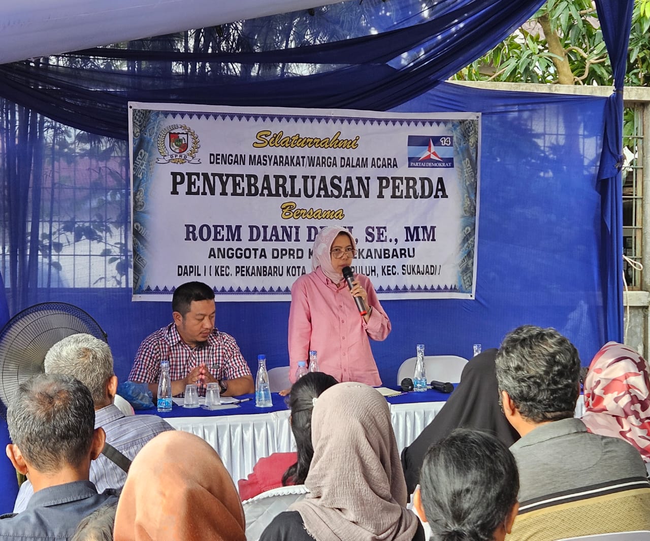 PEKANBARU, LIPO - Memberikan pemahaman kepada konsituen di Daerah Pemilihan (Dapil) nya, Anggota DPRD Kota Pekanbaru dari Fraksi Partai Demokrat (F-Demokrat), Roem Diani Dewi SE MM, melakukan Sosialisasi Peraturan Daerah (Sosper) Nomor 5 tahun 2023 tentang Pengelolaan Air Limbah Domestik.