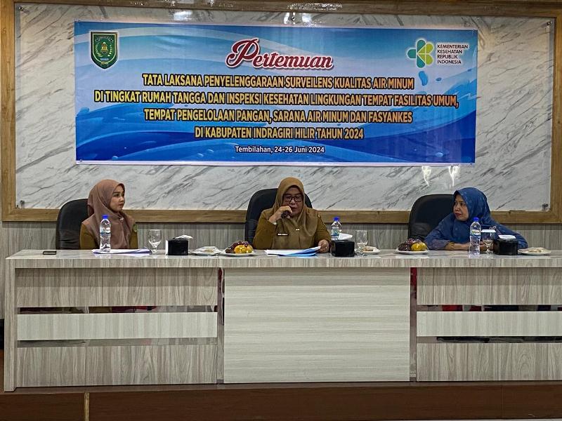 TEMBILAHAN, LIPO - Dinas Kesehatan (Dinkes) Kabupaten Indragiri Hilir (Inhil) menggelar pertemuan tatalaksana penyelenggaraan surveilans kualitas air minum di tingkat rumah tangga dan inspeksi kesehatan lingkungan tempat fasilitas umum, tempat pengelolaan pangan, sarana air minum dan Fasilitas Layanan Kesehatan (Fasyankes), Senin 24 Juni 2024.