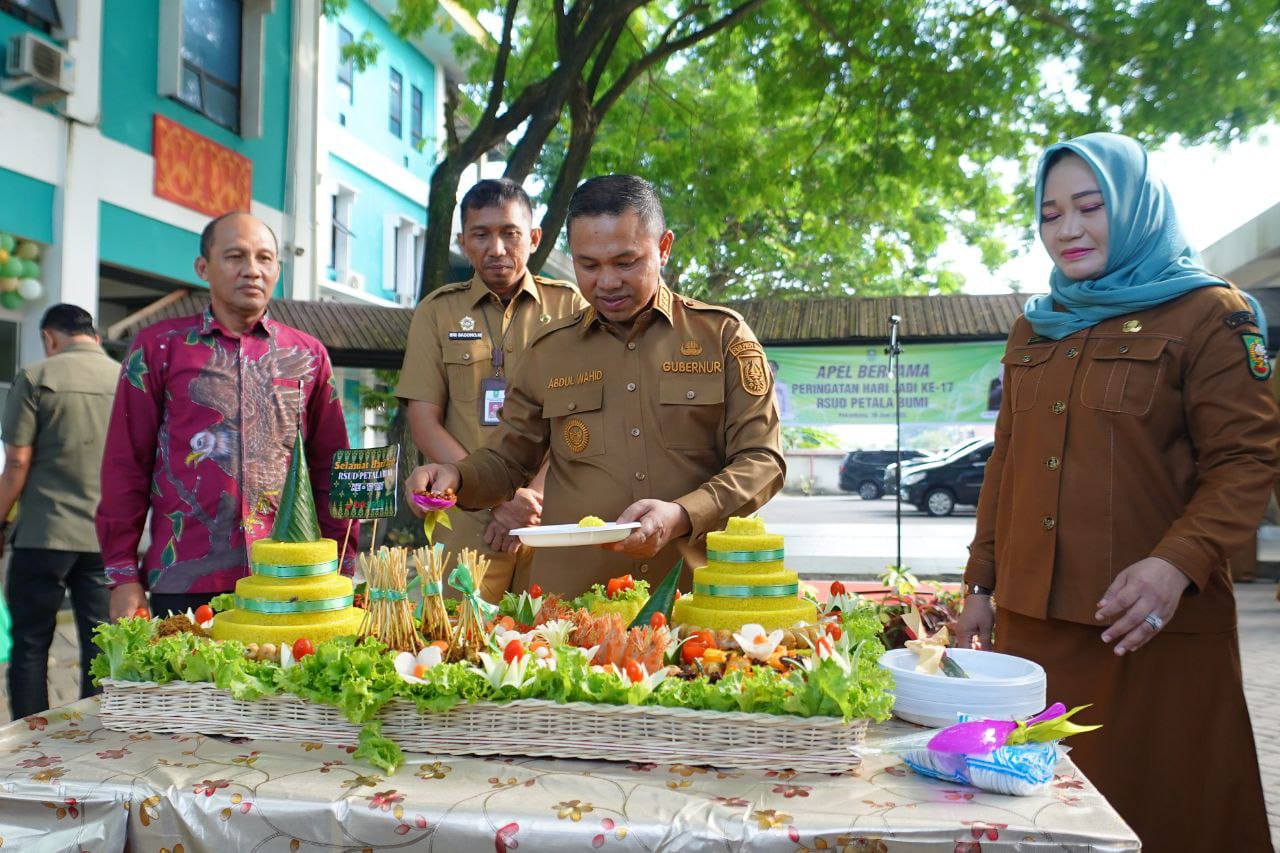 Gubri Abdul Wahid saat menjadi Pembina apel HUT ke-17 RS Petala Bumi Pekanbaru.