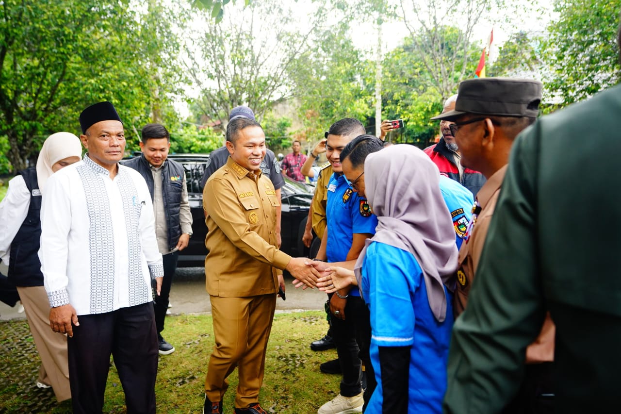 Gubri Abdul Wahid menyalami warga saat menghadiri acara pasar murah.