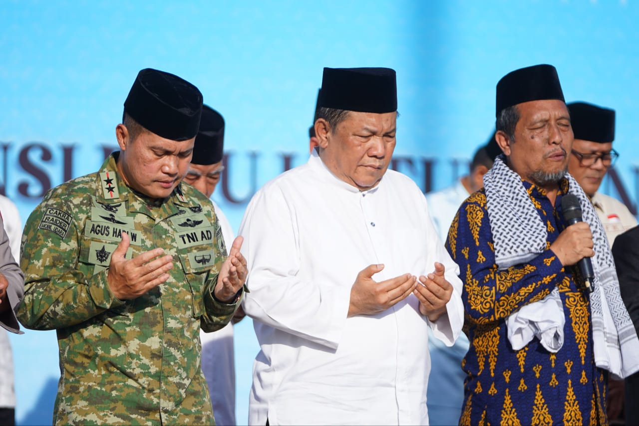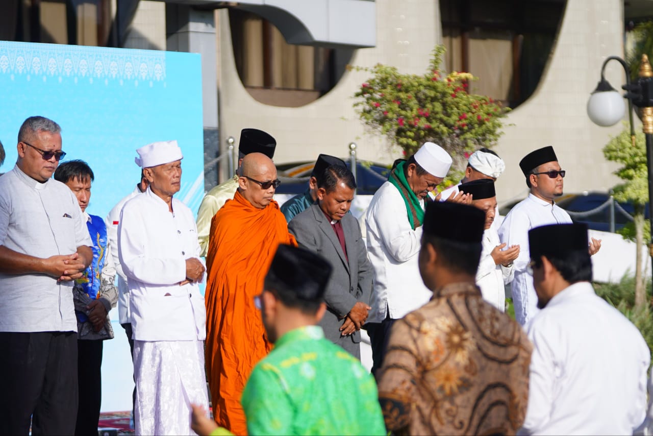 PEKANBARU, LIPO - Udara pagi di halaman Kantor Gubernur Riau terasa lebih hening dari biasanya. Rombongan jemaah sebagian memejamkan mata, sebagian lagi menunduk dalam diam. Di bagian depan, para tokoh agama dari berbagai keyakinan berdiri sejajar, memimpin doa untuk saudara-saudara yang tengah berjuang menghadapi bencana alam di Aceh, Sumatera Utara, dan Sumatera Barat.