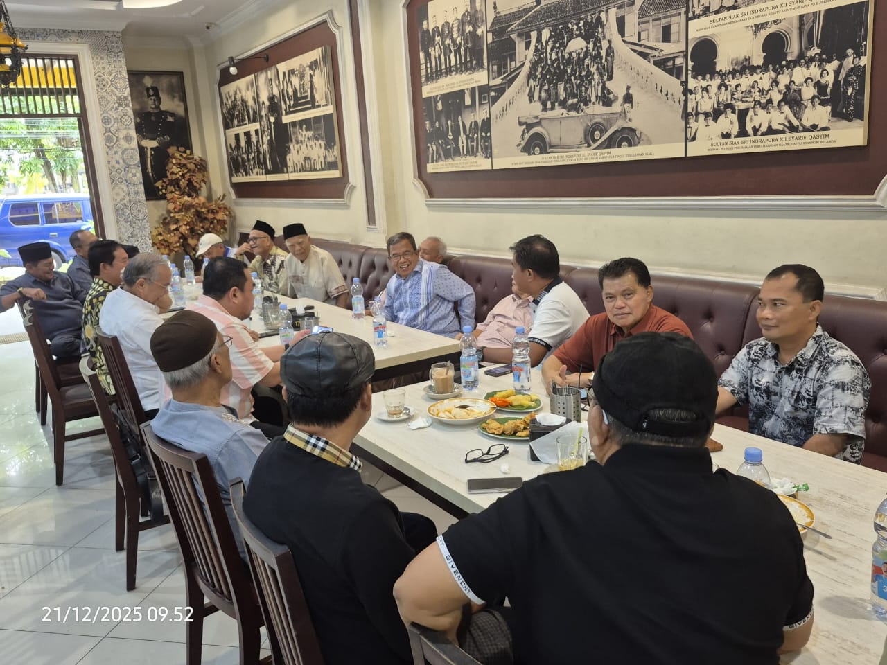 PEKANBARU, LIPO - Pengurus Ikatan Keluarga Kuantan Singingi (IKKS ) Pekanbaru menggelar pertemuan silaturahmi sekaligus sarapan pagi bersama Tokoh Masyarakat Kuansing yang ada di Pekanbaru yang dilaksanakan di Sultan Resto Jalan Ronggo Warsito Pekanbaru, Ahad (21/12/2025).