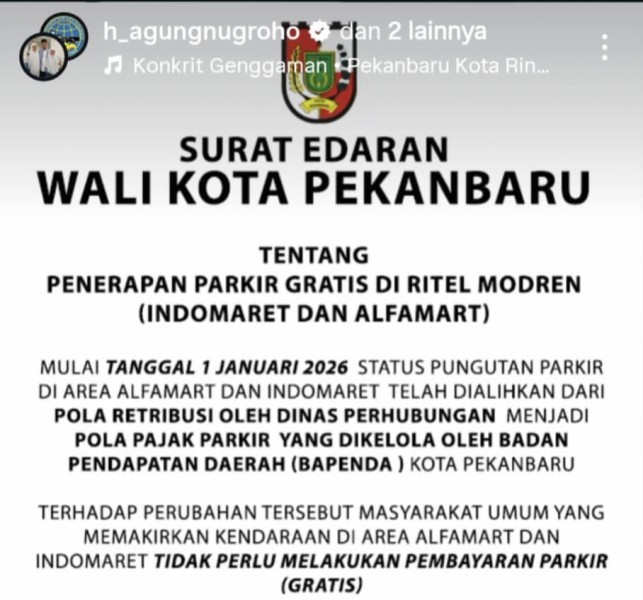 Muncul Edaran Walikota Pekanbaru, Mulai Januari 2026 Parkir di Indomaret dan Alfamart Gratis
