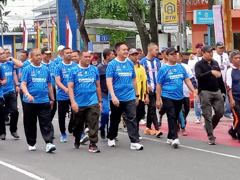 PEKANBARU, LIPO - Ribuan warga Pekanbaru mengikuti jalan santai Sempena HUT ke-77 Bhayangkara tahun 2023.