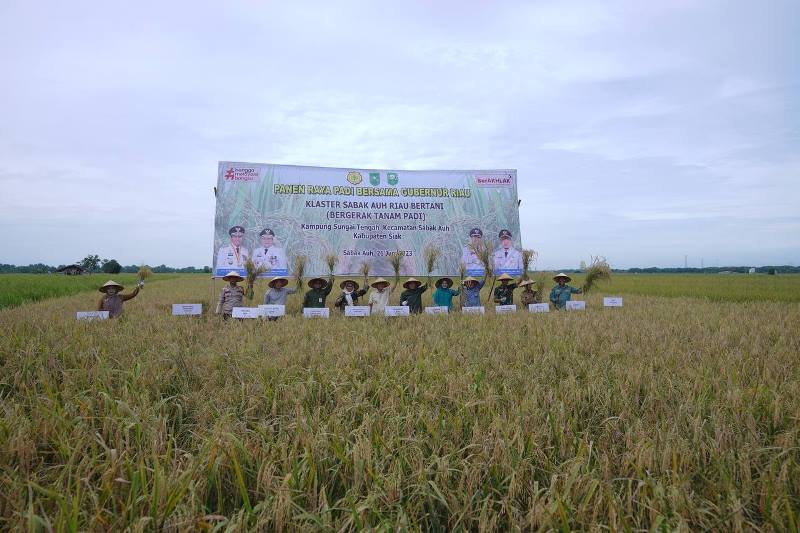 Kegiatan panen raya dan penyerahan bantuan tersebut dilakukan di Kampung Sungai Tengah, Kecamatan Sabak Auh, Kabupaten Siak, Senin (26/06/2023).