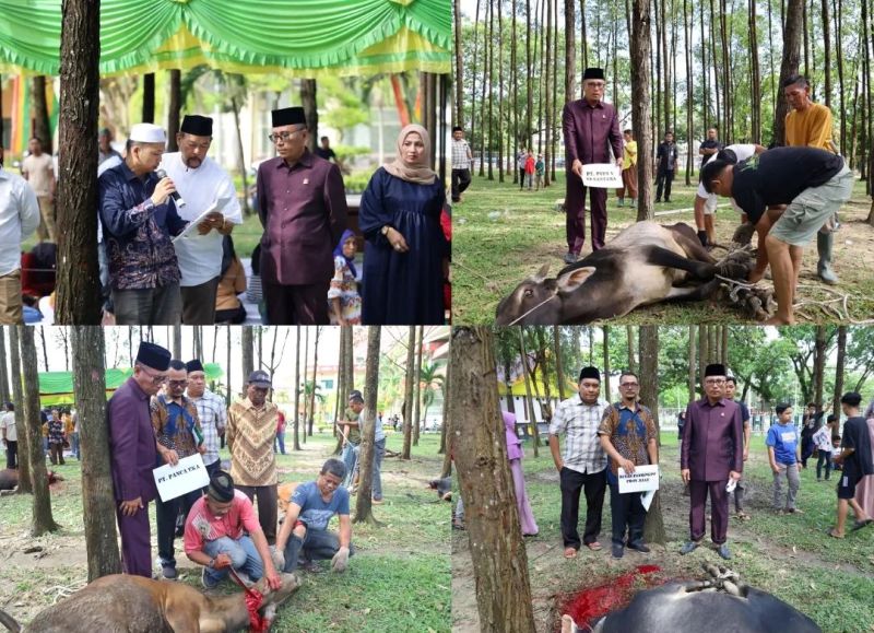 Pemotongan hewan kurban dalam rangka Hari Raya Idul Adha 1444 H ini, dibuka oleh Ketua Masjid Daarul Abrar Kompleks Gedung DPRD Provinsi Riau Sugeng Pranoto.