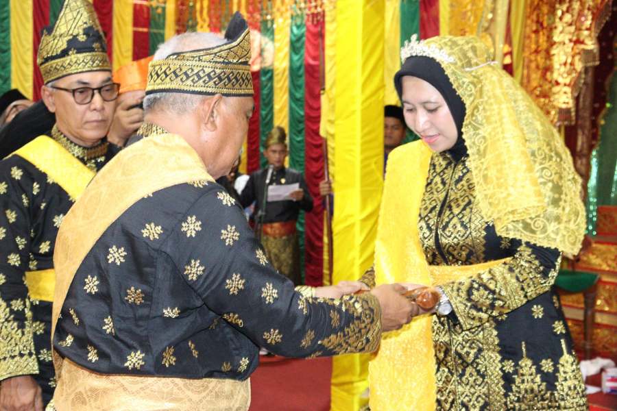 Prosesi peanugerahan kepada Bupati Inhu dipimpin oleh datuk Masnur dan Datuk Munawar Halil.