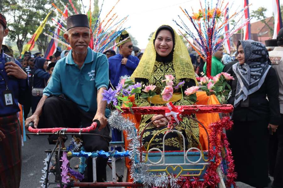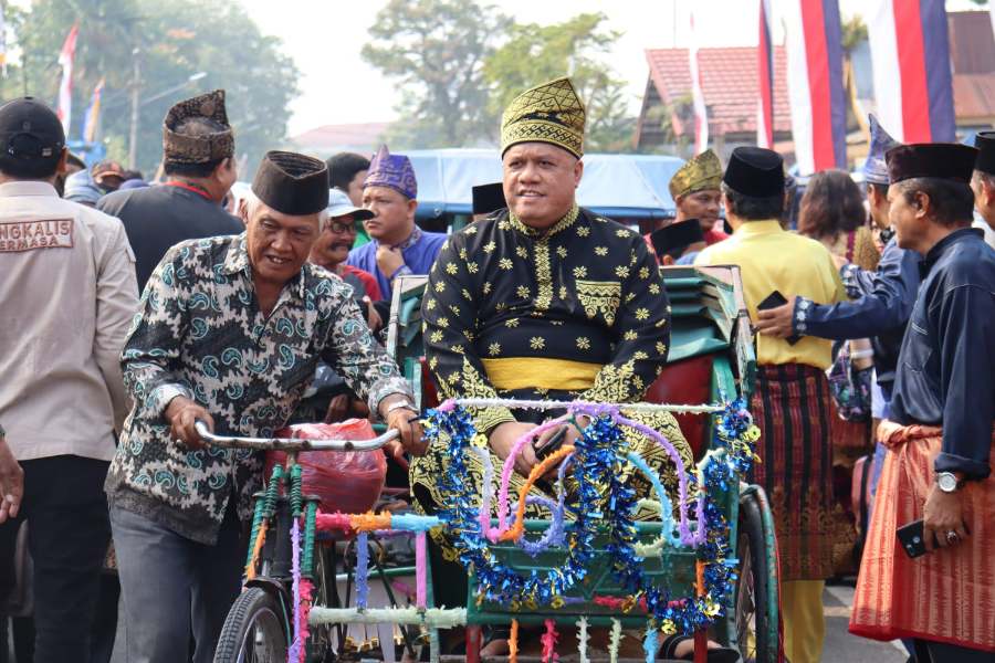 Sebelum mengikuti prosesi penabalan gelar adat, Bupati Inhu, Puan Rezita Meylani Yopi didampingi suami bertolak dari kediaman menggunakan becak disertai iringan arak-arakan menggunakan becak sepeda motor bersama seluruh pejabat dan Aparatur Sipil Negara (ASN) dan non ASN serta masyarakat tak ketinggalan masyarakat Kabupaten Inhu.