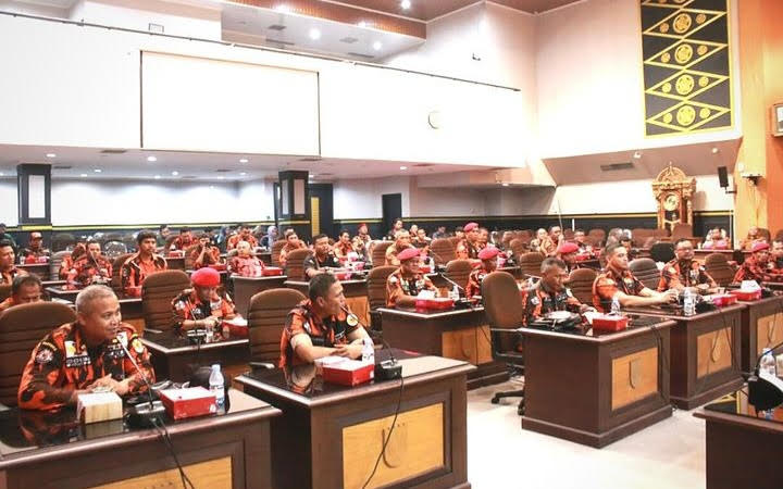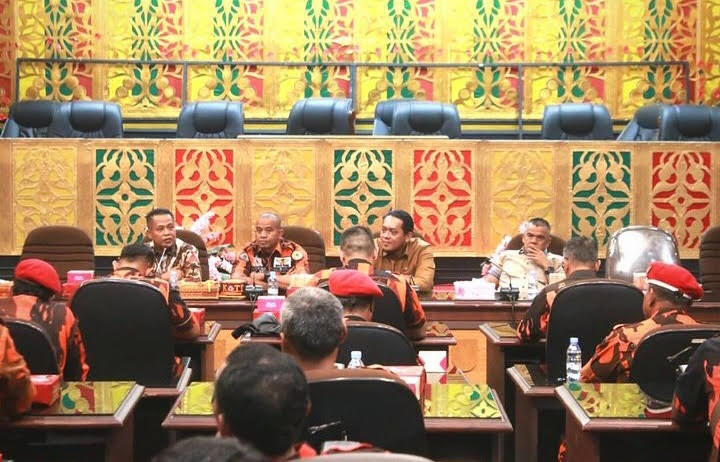 PEKANBARU, LIPO - Dalam rangka silaturahmi dan memberikan dukungan kepada DPRD Pekanbaru, puluhan anggota ormas Pemuda Pancasila (PP) mendatangi DPRD Kota Pekanbaru, Selasa (17/10/2023). Pertemuan ini berlangsung di Ruang Rapat Paripurna.