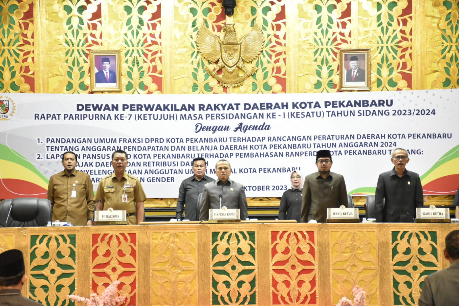 Melalui juru bicara masing-masing Fraksi, mereka menyampaikan aspirasinya terhadap Rancangan Peraturan Daerah tentang Anggaran pendapatan dan Belanja daerah kota Pekanbaru tahun anggaran 2024.