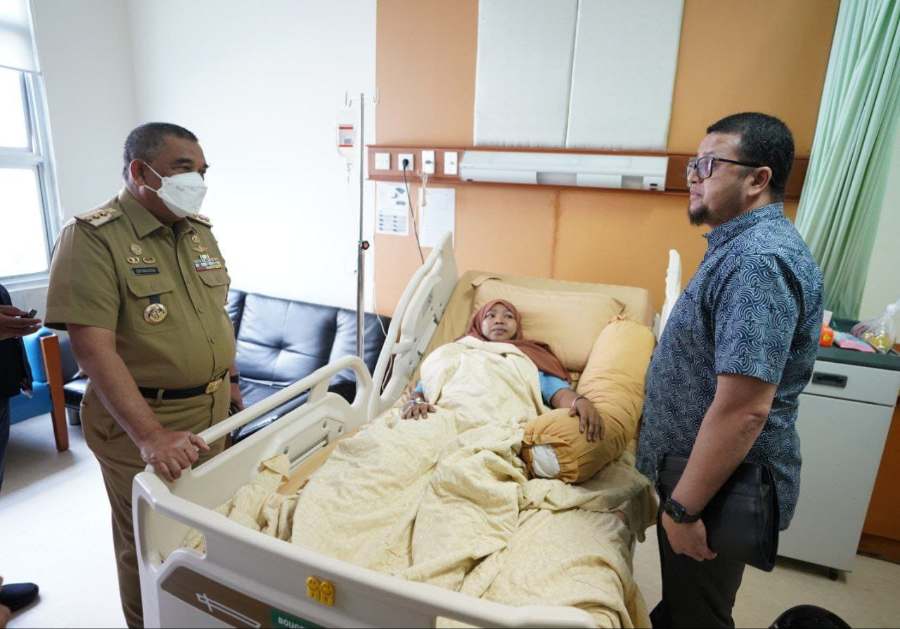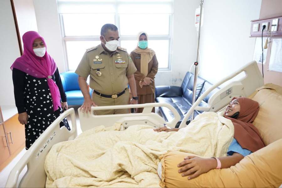 “Lia ini (pasien red) mengalami penyakit tulang. Kemarin waktu berobat dia harus dirawat. Jadi harus ditangani dengan secara serius dan besok mau dibius total untuk pengobatannya,” kata Gubri yang didampingi dirut RSUD Arifin Ahmad Wan Fajriatul