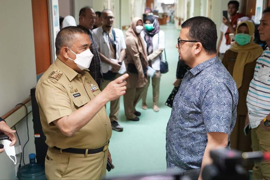 PEKANBARU, LIPO - Di tengah padatnya segala urusan pekerjaan mengurus daerah, Gubernur Riau (Gubri) Brigjen TNI (Purn) Edy Natar Nasution menyempatkan diri untuk menjenguk tim pramusaji kediamannya yang terbaring lemas di Rumah Sakit Umum Daerah (RSUD) Arifin Achmad. Kehadirannya ini didampingi oleh sang istri, Suti Mulyati, pada Senin (29/01/24).