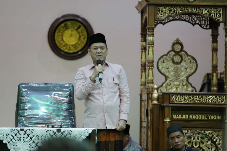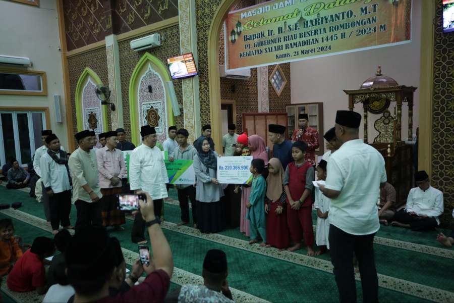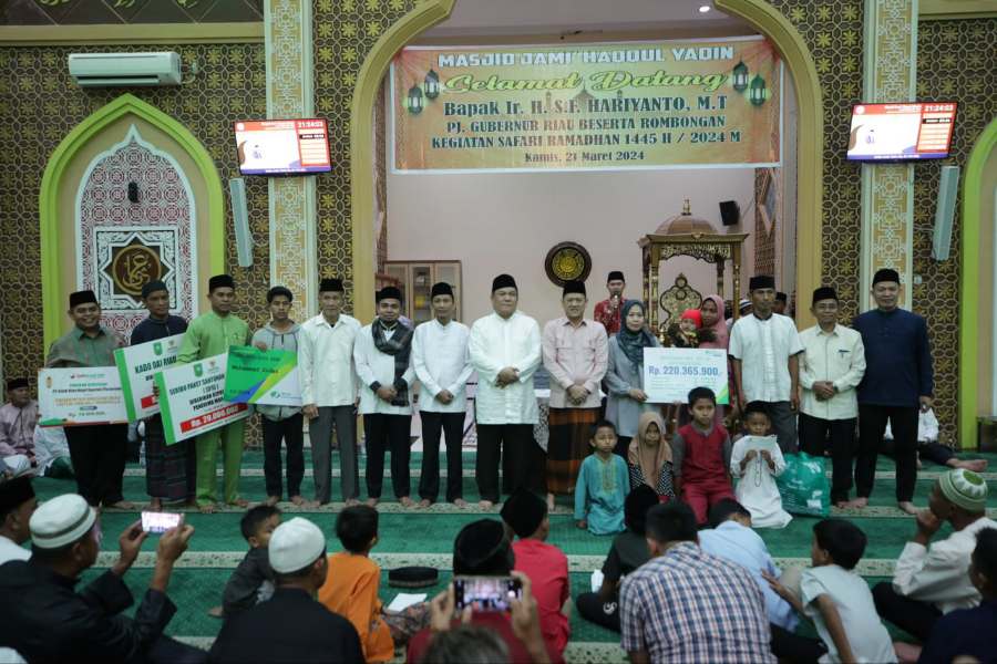 PEKANBARU, LIPO - Penjabat (Pj) Gubernur Riau (Gubri) SF Hariyanto melakukan safari Ramadan di Masjid Jami Haqqul Yaqin Desa Tarai Bangun, Kecamatan Tambang, Kampar, Kamis (21/3/2024).