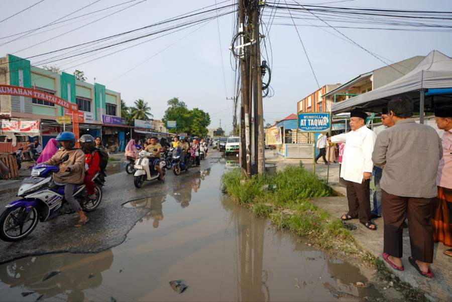 KAMPAR, LIPO - Penjabat (Pj) Gubernur Riau (Gubri), SF Hariyanto bersama Pj Bupati Kampar, Hambali melakukan peninjauan jalan Suka Karya, Panam, Kamis (21/3/2024).