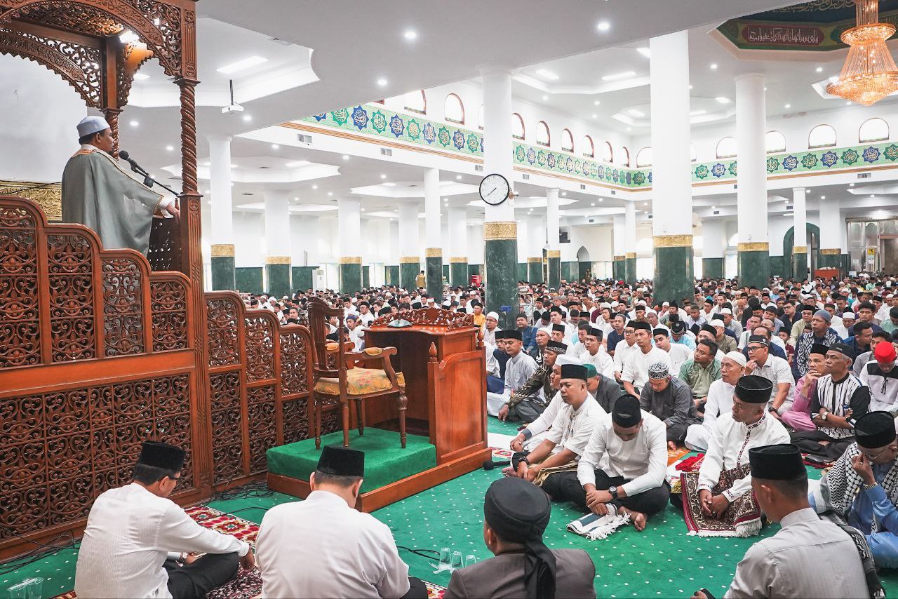 Pada pagi yang penuh berkah, beliau bergabung dengan ribuan umat muslim dalam melaksanakan salat ied di Masjid Raya Annur, Pekanbaru, Provinsi Riau, Rabu (10/04/2024).