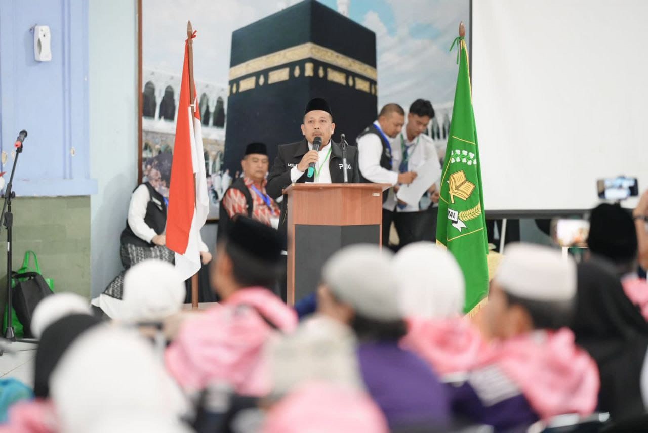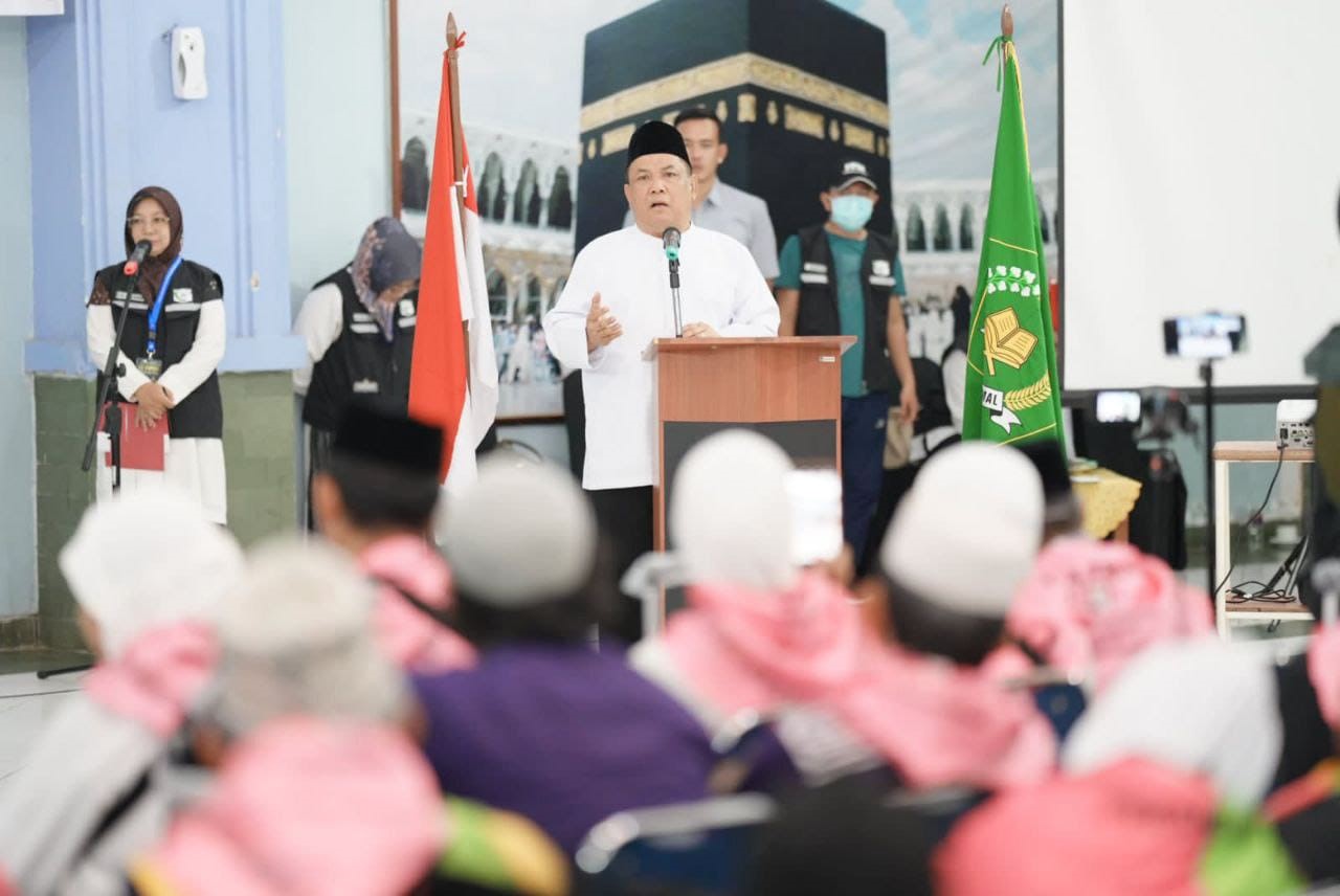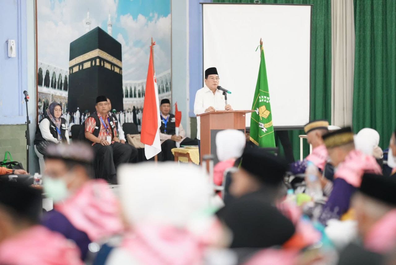 “Mari kita bersyukur karena sudah diberi kesempatan untuk melaksakan ibadah haji. Saya berpesan selama di tanah suci, jangan takabur, ikuti arahan petugas yang ada,” ajaknya.