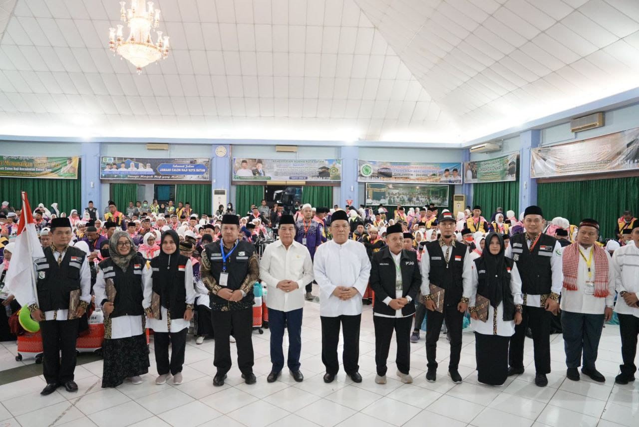 PEKANBARU, LIPO - Penjabat (Pj) Gubernur Riau SF Hariyanto resmi melepas langsung Jamaah Calon Haji Riau di asrama haji embarkasi Batam, Provinsi Kepulauan Riau (Kepri), Selasa (14/5/2024). Jamaah haji ini berasal dari kota Pekanbaru.