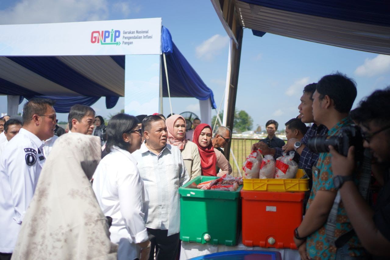Setelah kick off GNPIP digelar, Pj Gubri bersama Deputi Gubernur Senior BI melakukan penanaman komoditas cabai. Dilanjutkan dengan pelepasan tiga unit mobil pangan murah keliling, serta peninjauan pasar tani.