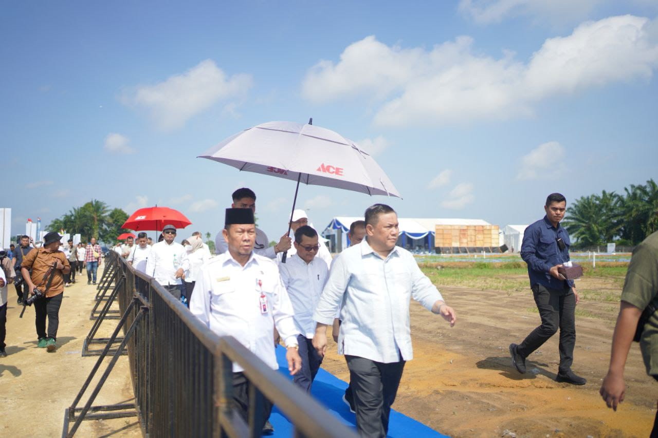PEKANBARU, LIPO - Penjabat (Pj) Gubernur Riau (Gubri) SF Hariyanto bersama Deputi Gubernur Senior Bank Indonesia (BI) Destry Damayanti melaunching Gerakan Nasional Pengendalian Inflasi Pangan (GNPIP) Wilayah Sumatera 2024. Kegiatan diselenggarakan di Kecamatan Binawidya, Kota Pekanbaru, Jumat (17/5/2024).