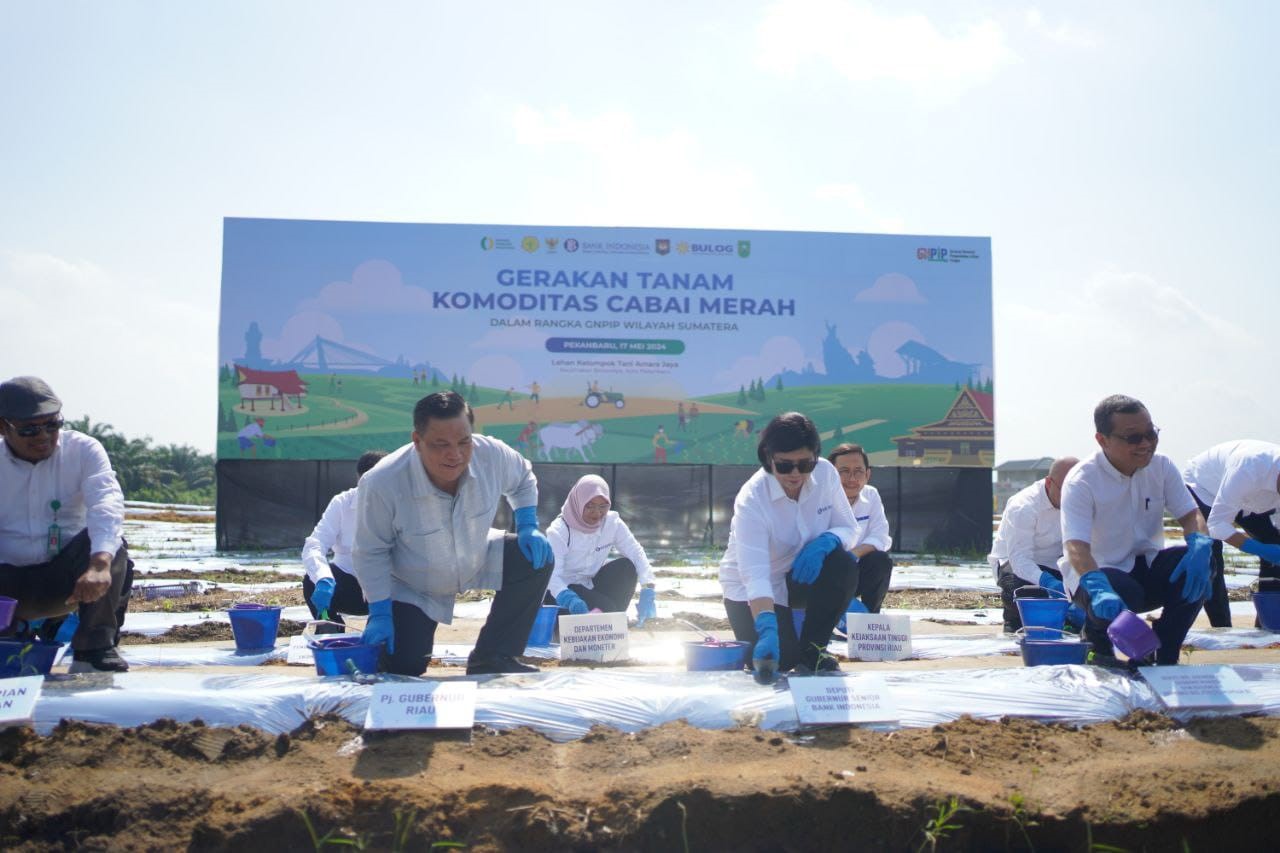 Penanaman cabai pada acara launching GNPIP) Wilayah Sumatera 2024 di Binawidya Pekanbaru.