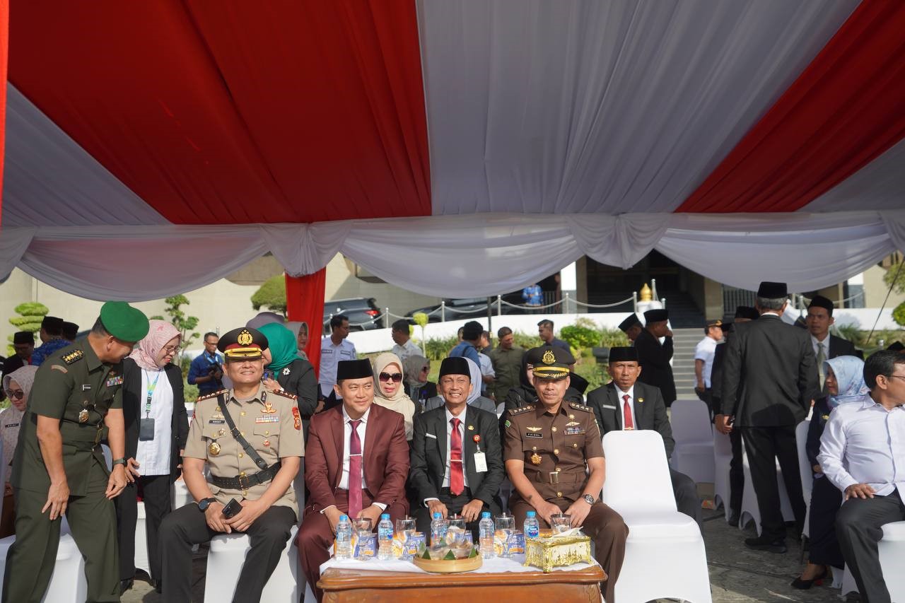Pj Sekdaprov Riau, Indra bersama unsur Forkopimda Riau pada Upcara Harkitnas 2024.