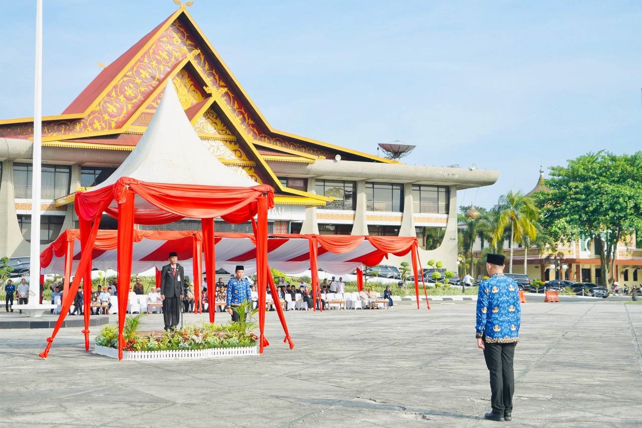 Penjabat (Pj) Sekretaris Daerah Provinsi (Sekdaprov) Riau, Indra bertindak sebagai Inspektur Upacara . Acara ini digelar Halaman Kantor Gubernur Riau.