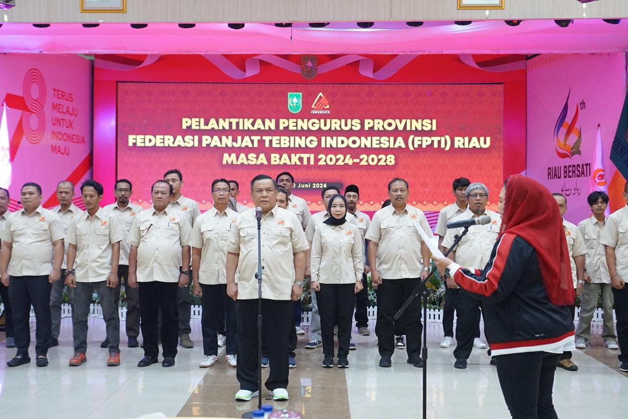 PEKANBARU, LIPO - Penjabat (Pj) Gubernur Riau, SF Hariyanto, resmi dilantik sebagai Ketua Federasi Panjat Tebing Indonesia (FPTI) Provinsi Riau. Kegiatan tersebut berlangsung di Gedung Daerah Balai Serindit, Kota Pekanbaru, Minggu (30/06/2024).