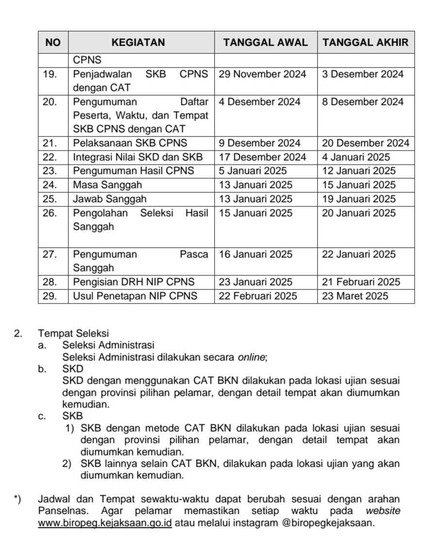 Berikut Jadwal Seleksi dan Tata Cara Seleksi CPNS di Kejaksaan RI: