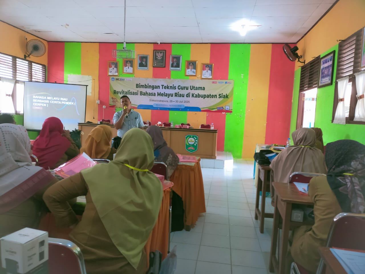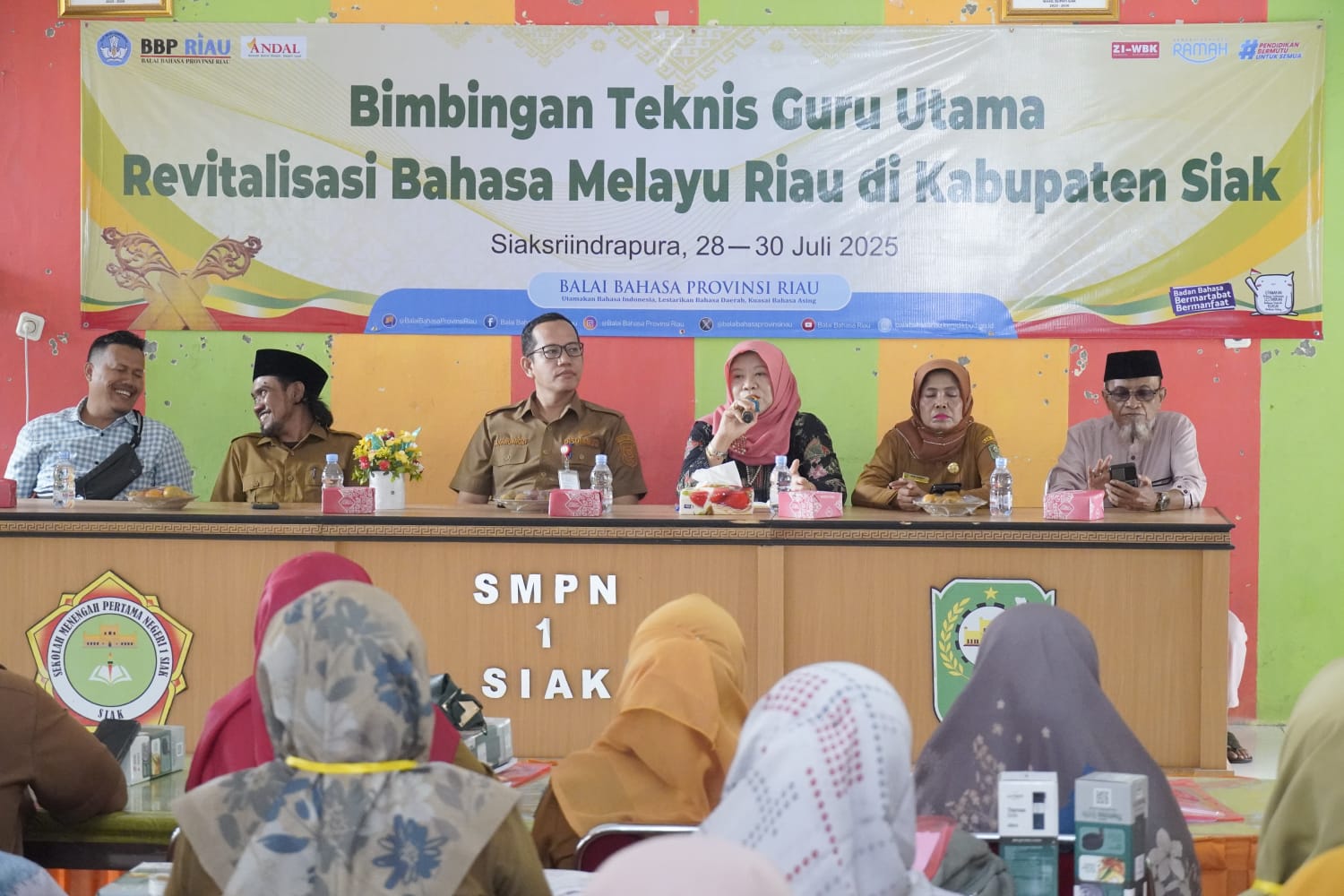 Siak, LIPO-Dalam upaya menjaga dan melestarikan kekayaan budaya lokal, khususnya bahasa Melayu Riau, Balai Bahasa Provinsi Riau bersama pemerintah Kabupaten Siak menggelar Bimbingan Teknis (Bimtek) Guru Utama Revitalisasi Bahasa Daerah (RBD) Bahasa Melayu Riau.