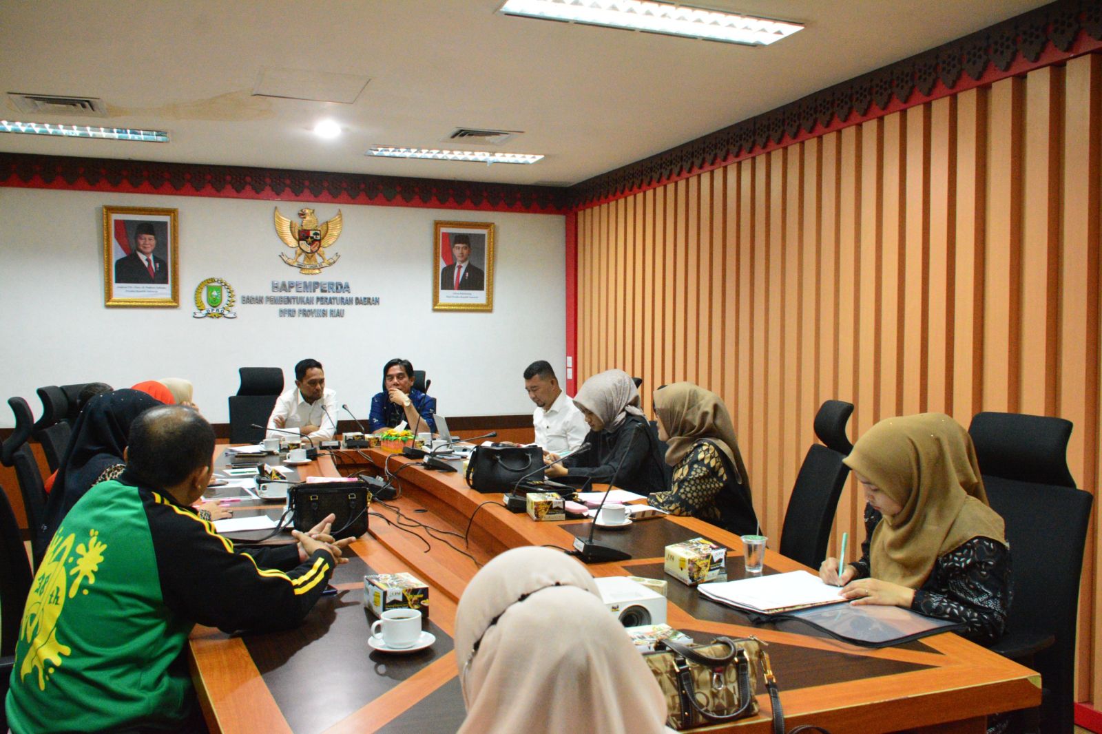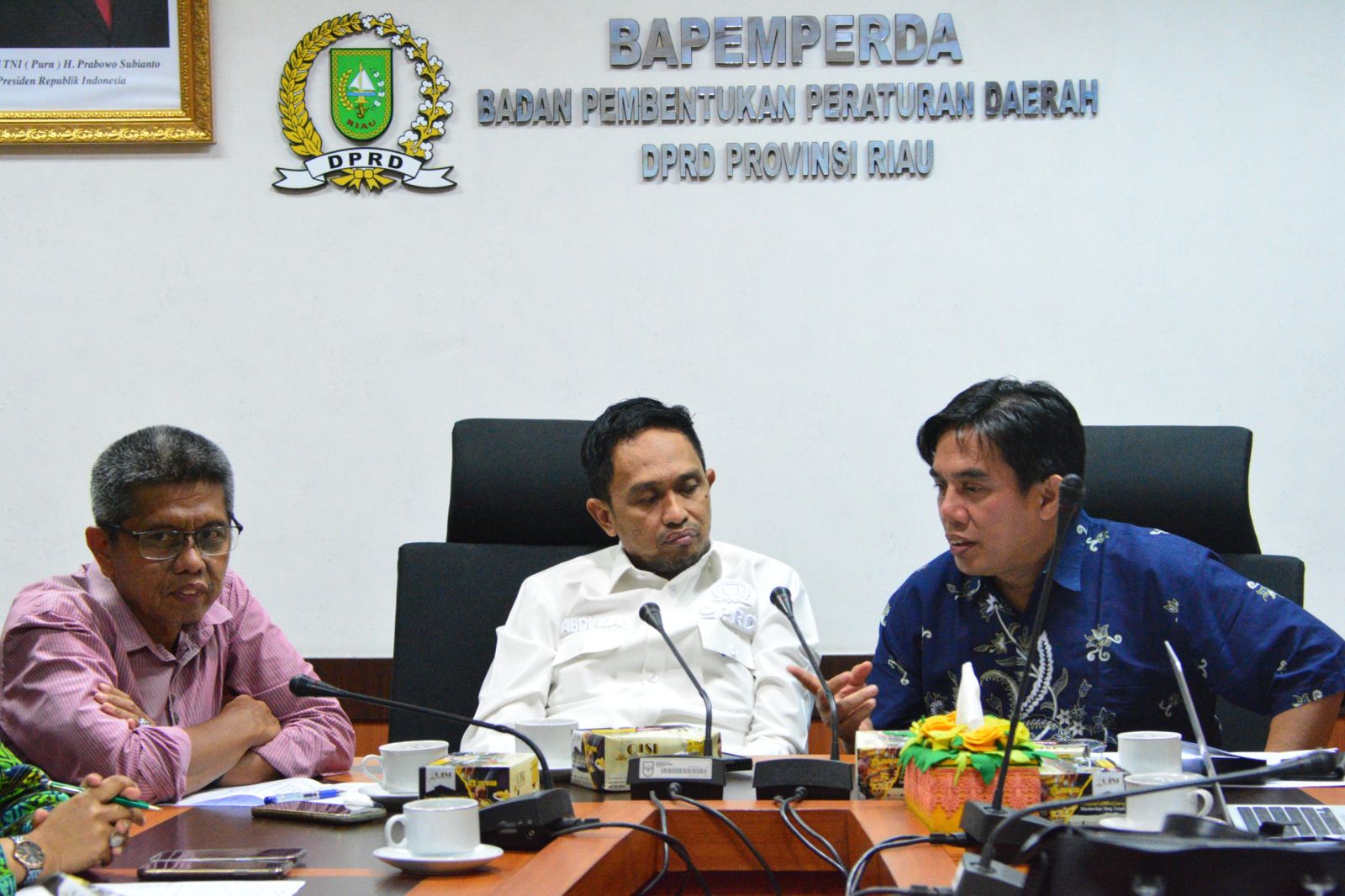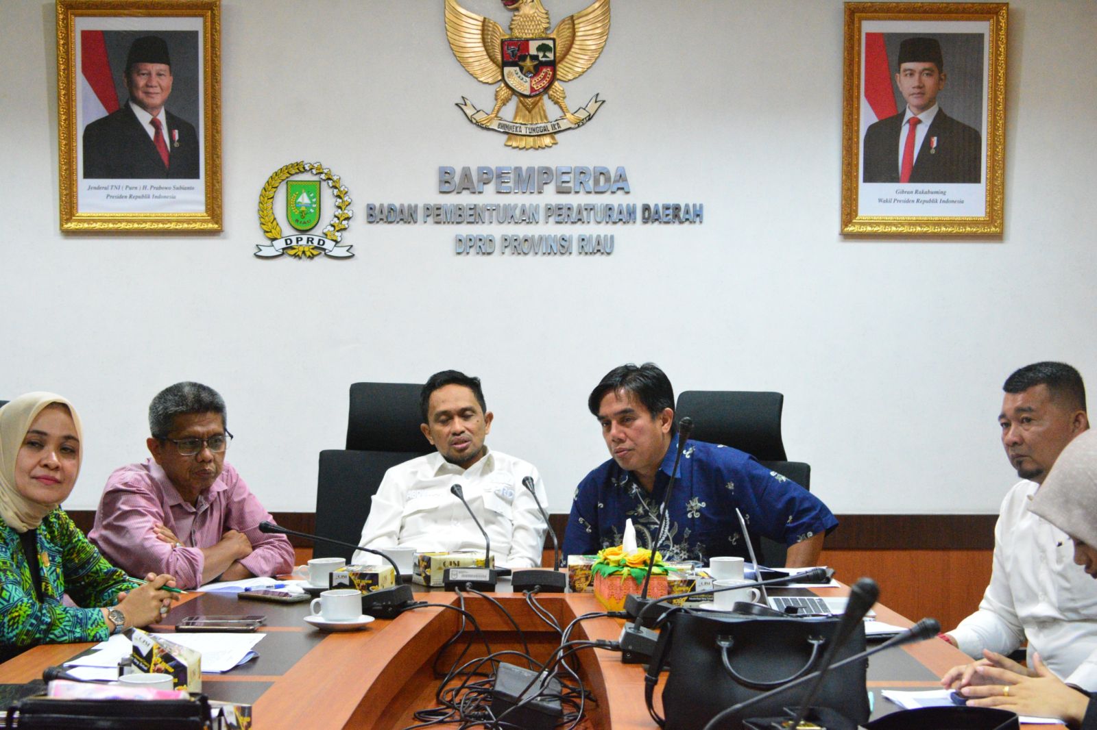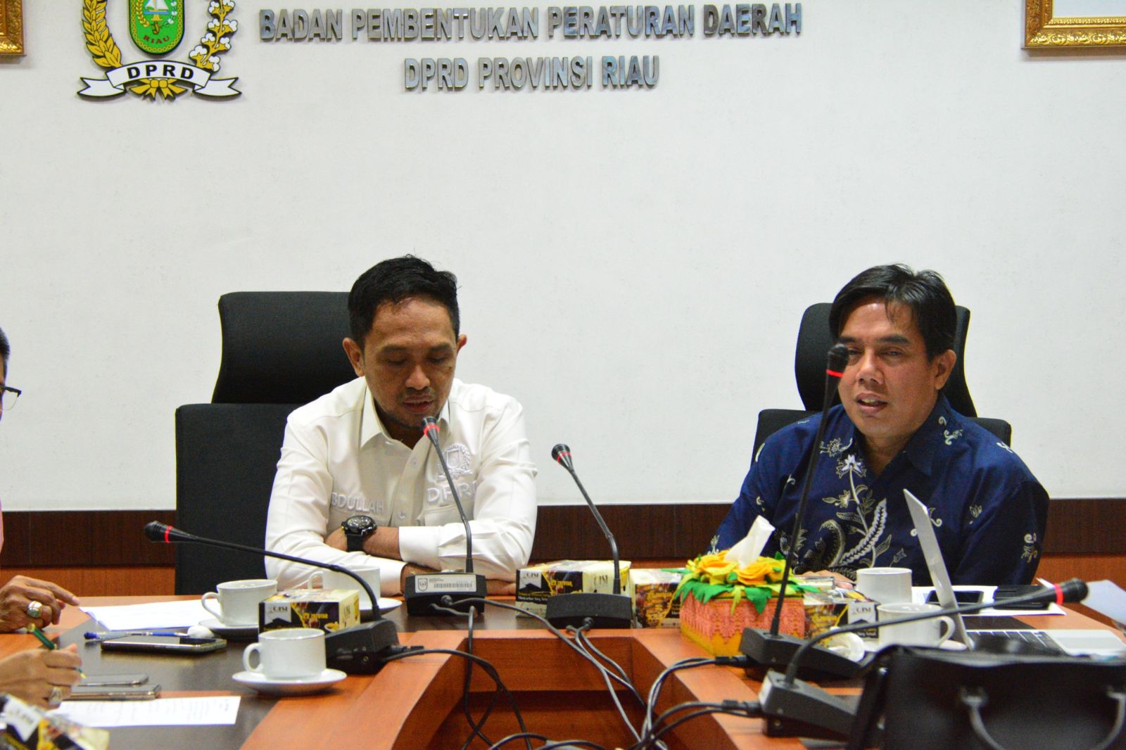 Anggota DPRD Riau, Abdullah, bersama Tenaga Ahli DPRD Riau, Fendri Jaswir, di Ruang Rapat Badan Pembentukan Peraturan Daerah.